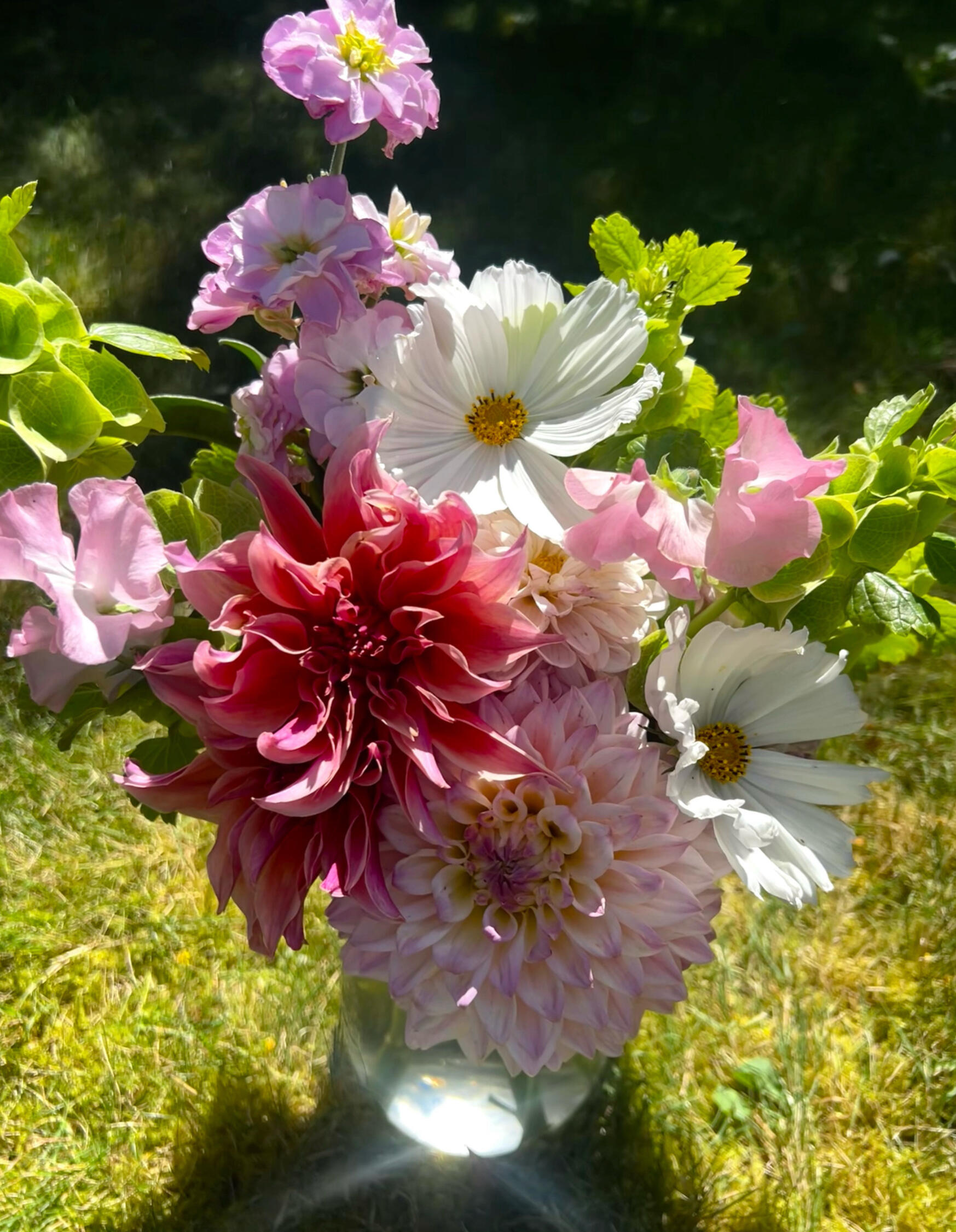 My passion for floral design is deeply tied to the love language of gift-giving. I find meaning in being a part of loving exchanges, “just because” moments, or memorialization, all through flowers. Whenever possible, I prioritize working with blooms grown in my own home garden. I am committed to organic, non-toxic growing practices and to working in harmony with the bees, hummingbirds, and other critters who share the space. Gardening alongside them carries a responsibility I take seriously, and I make conscious choices to serve both the flowers and the life they support.- Sera, Gleam Florals.